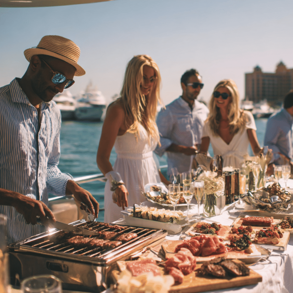 Most yacht hire packages include a licensed captain, crew, fuel, soft drinks, and water. Some providers also offer catering, live BBQ, entertainment, and water sports at additional costs.